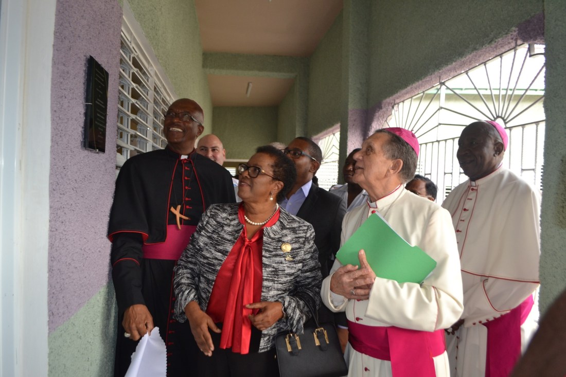 On Jan. 30, 2019, Food For The Poor Director of Distribution Services Craig Moss-Solomon helped to cut the ribbon at the dedication ceremony for a new Eye Clinic and Training Centre at the Holy Spirit Catholic Mission. The organization provided eight sewing machines and sewing equipment; floor tiles for the hallway, training room and other areas; folding tables and chairs for the classrooms; dental chairs and equipment for the clinic; and office furniture for the new centre.