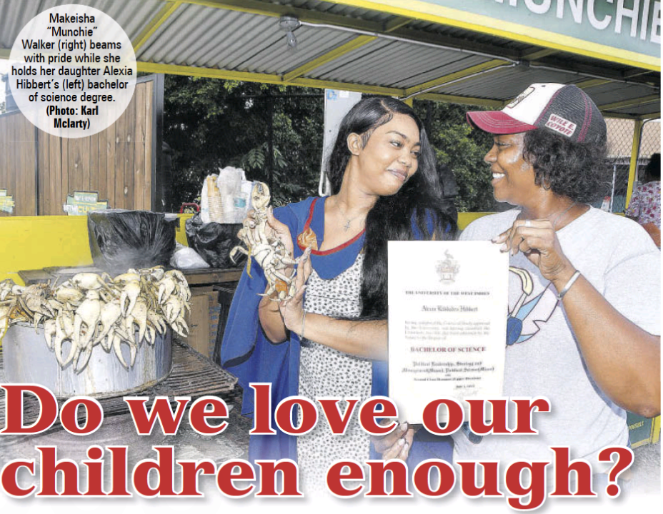 When we see the reports of fights in our high schools, we wonder what kind of homes produced these children. This is not an uptown-downtown issue. I remember interviewing our former World Boxing Champion Michael McCallum in the eighties. He came from a very humble home in the inner city but his mother was so watchful that she took him to church every night. Then there was the wonderful lead story in last week’s Jamaica Observer where young Alexia Hibbert turned up at her mother’s workplace in her graduation gown to show her the UWI BA Certificate. The workplace of her mother Makeisha Walker is at Crab Circle adjacent to National Heroes’ Park and the photo of the two features a huge pot of crabs, the means by which Walker has been raising and educating her two daughters.